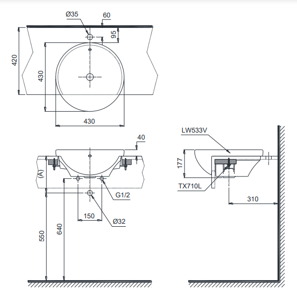 Thông Tin Sản Phẩm: Lavabo Bán Âm Bàn Cao Cấp LV-608
